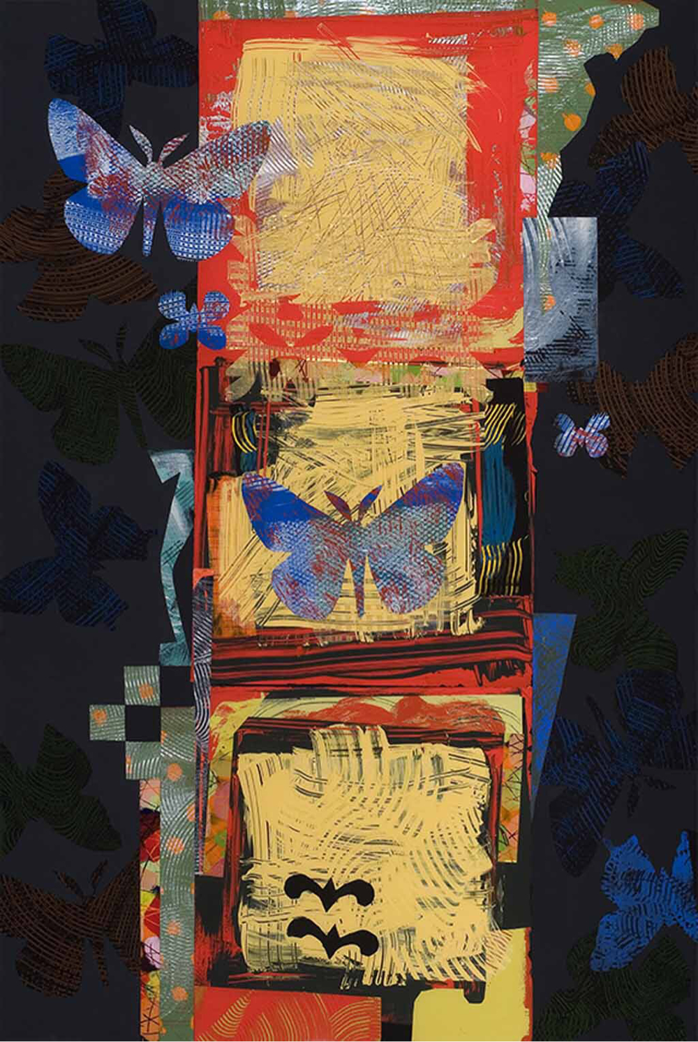 1- La maison des papillons, 2009, pellicule d'acrylique et résine sur bois, 122 x 81.5 cm (48''x32'')