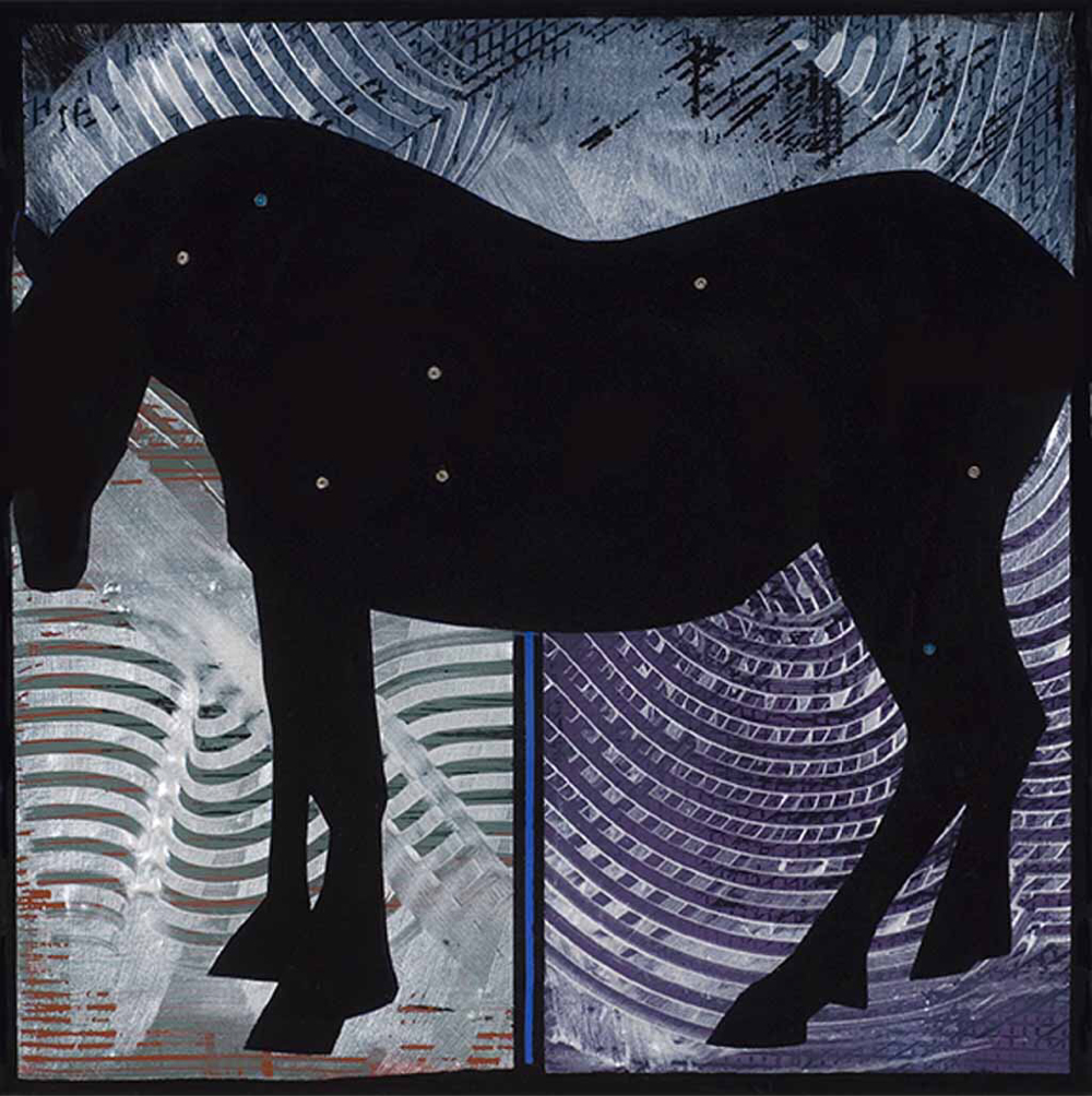3- Gardien stellaire 1, 2009, pellicule d'acrylique et résine sur bois, 40.5 x 40.5 cm ( 16''x 16'')