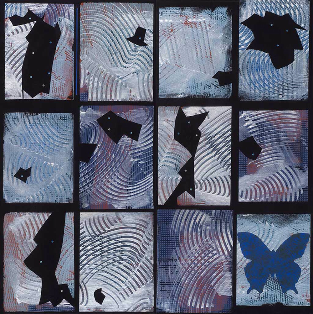 12- Papillon de nuit 2, 2009, pellicule d'acrylique et résine sur bois, 40.5 x 40.5 cm (16'' x 16'')